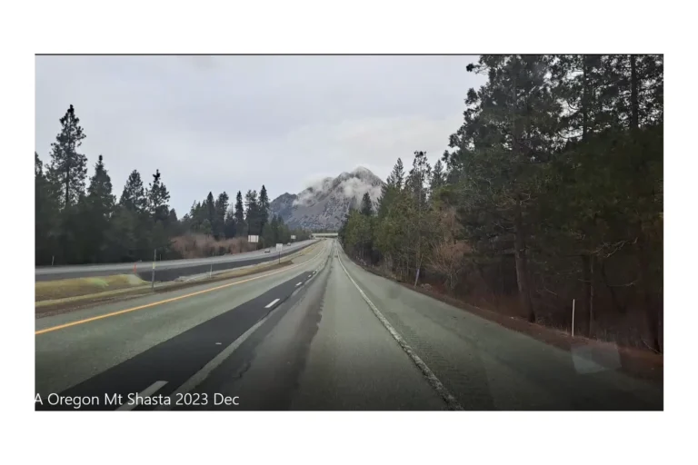 A dashcam video recorded during a yurt delivery tour. Mount Shasta, California, USA – December 2023