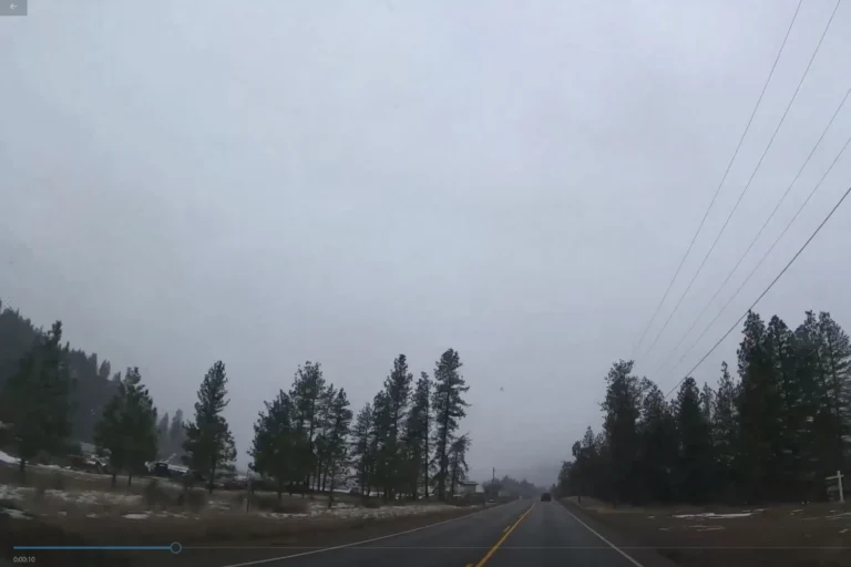 A dashcam video recorded when delivering yurts. Omak -Twisp, Washington, USA – December 2023.