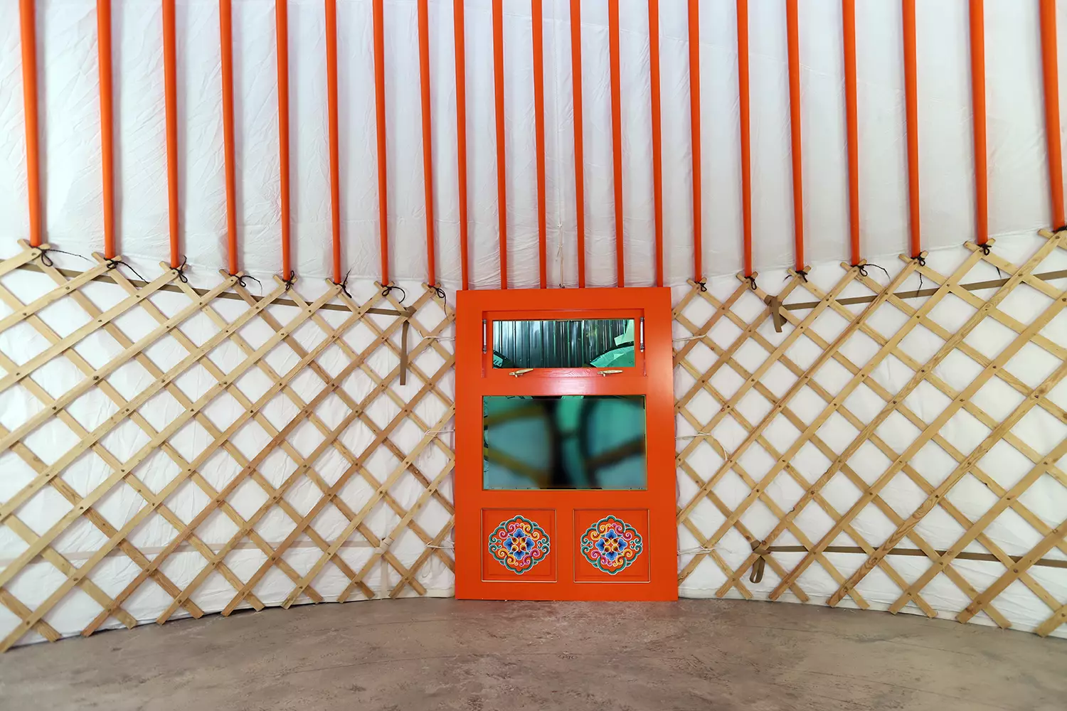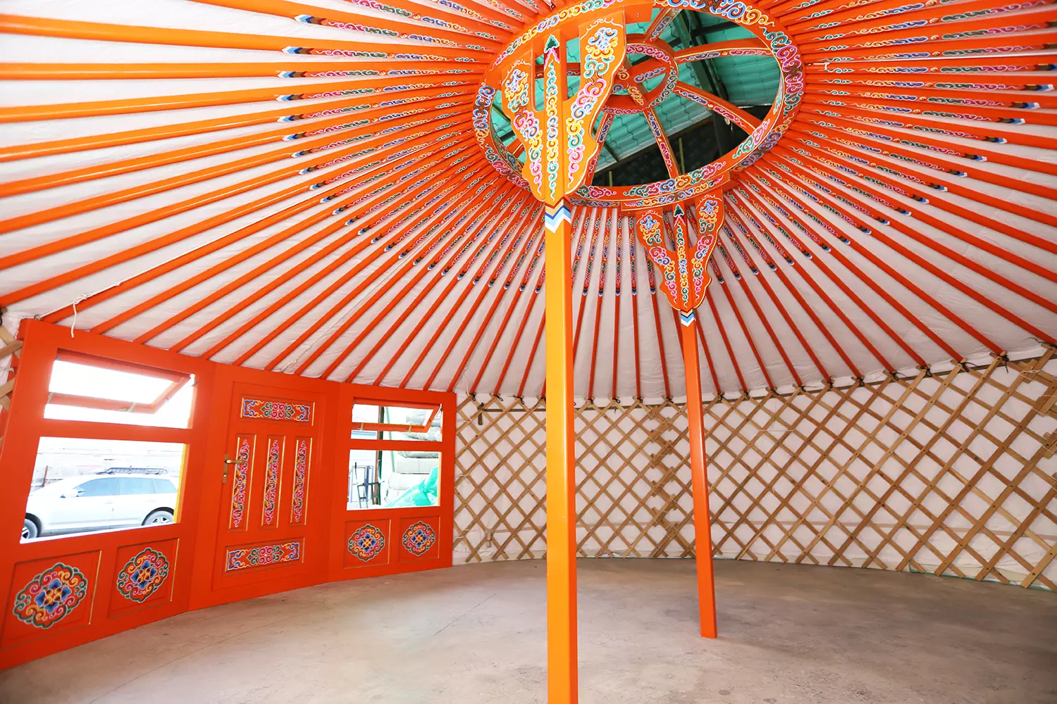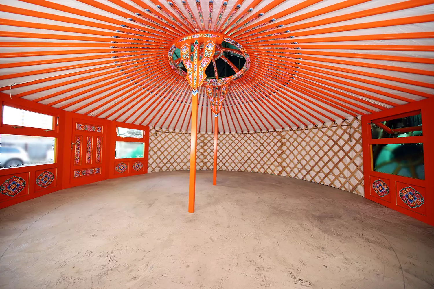 Images are of the actual yurt for sale. Transparent polycarbonate windows, transparent skylight finishes, and the chimney flashing in the skylight will be installed as standard if not already shown in the pictures.