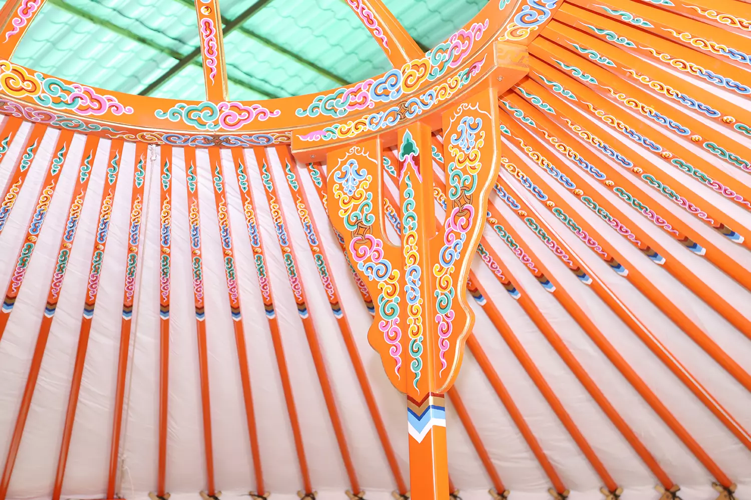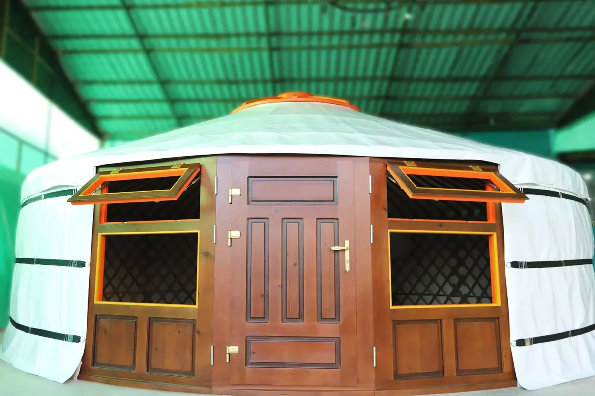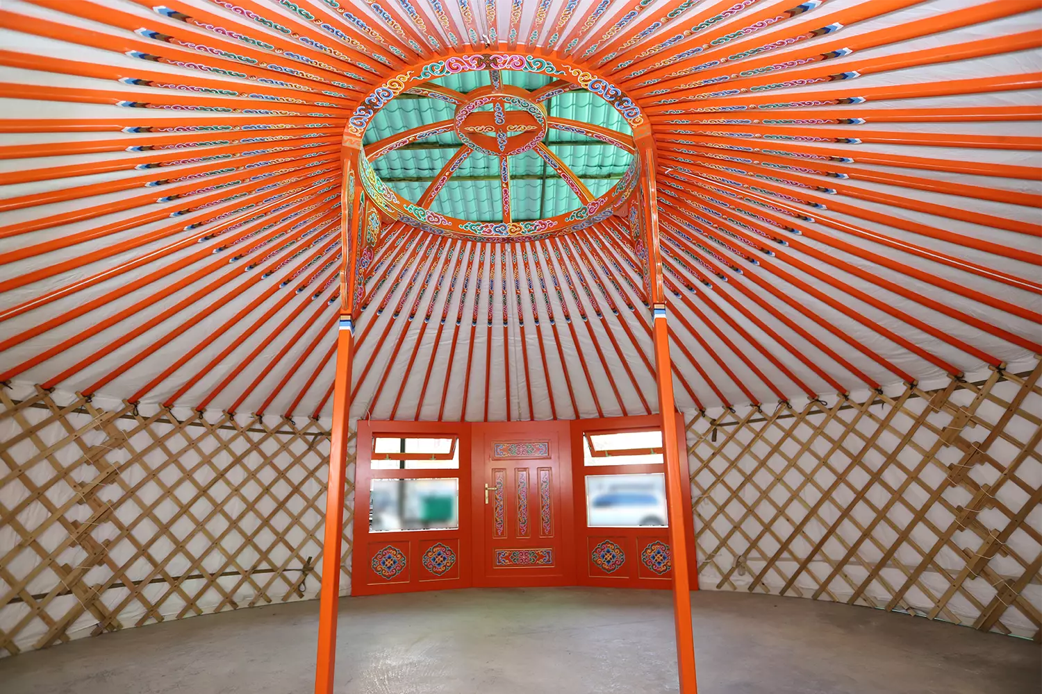 Images are of the actual yurt for sale. Transparent polycarbonate windows, transparent skylight finishes, and the chimney flashing in the skylight will be installed as standard if not already shown in the pictures.