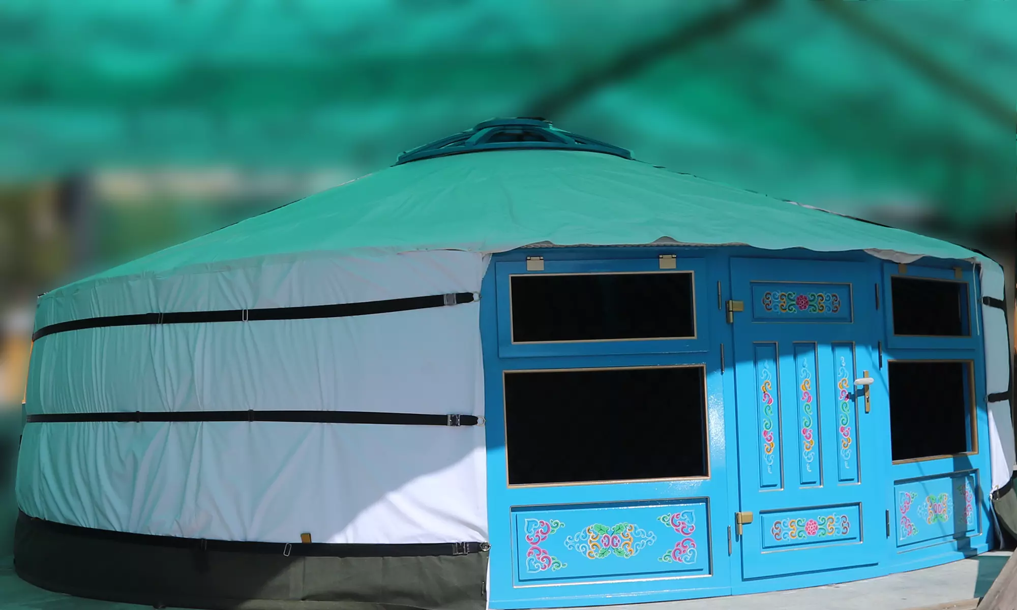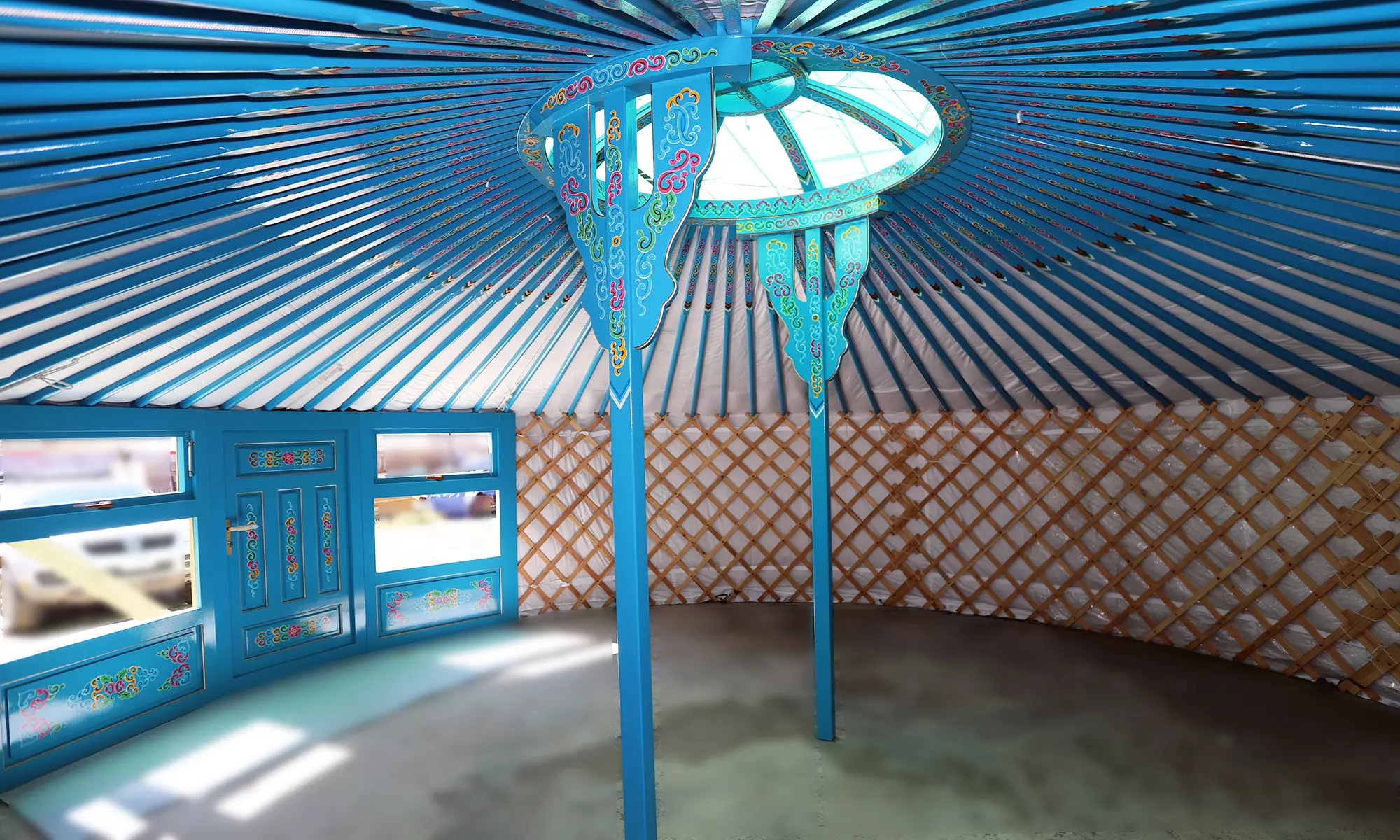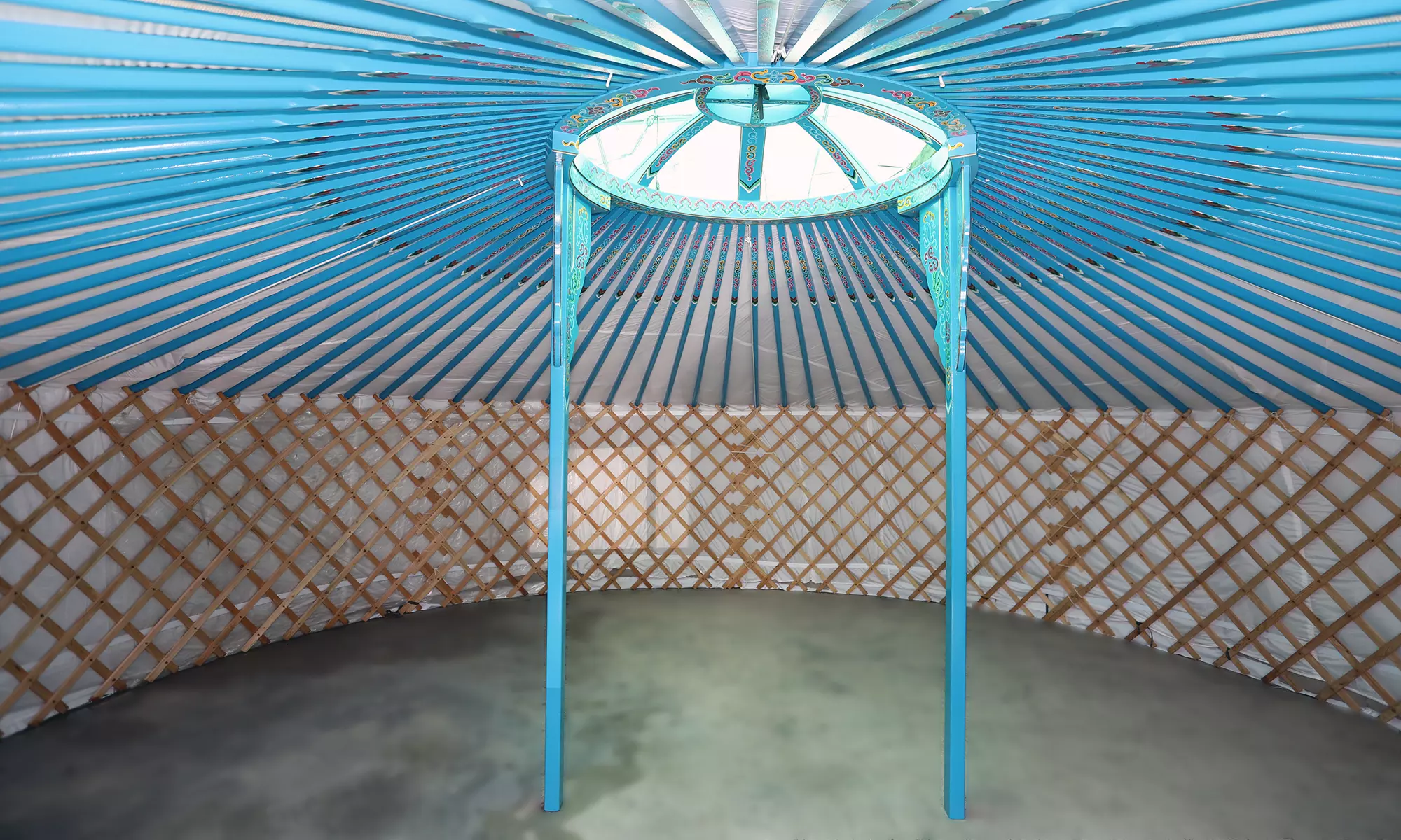 Images are of the actual yurt for sale. Transparent polycarbonate windows, transparent skylight finishes, and the chimney flashing in the skylight will be installed as standard if not already shown in the pictures.